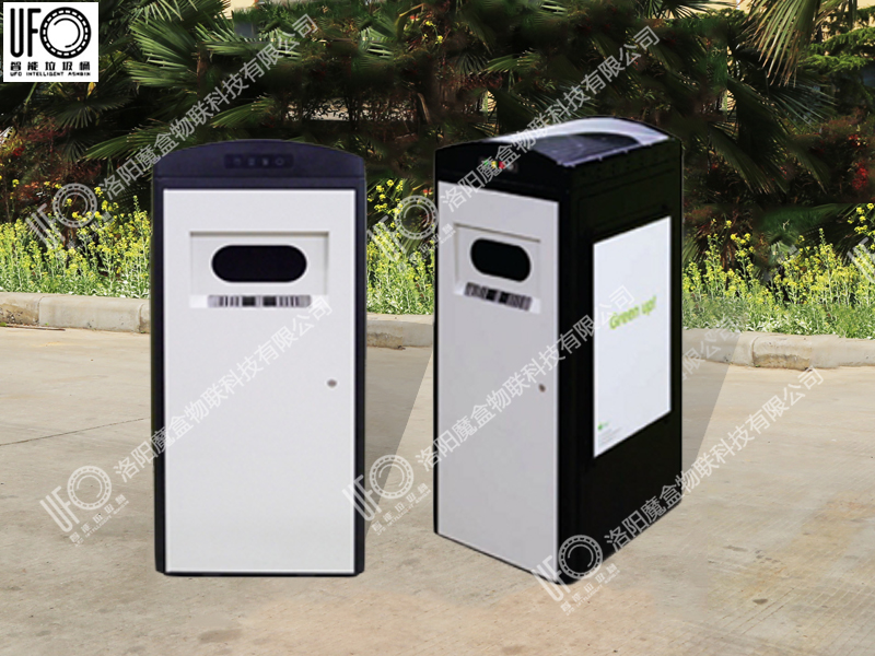 垃圾箱通過不同投放口進行垃圾分類引導,內(nèi)部設有壓縮系統(tǒng),用箱頂?shù)奶柲茈姵匕骞╇?可自動對投入的垃圾進行壓縮。