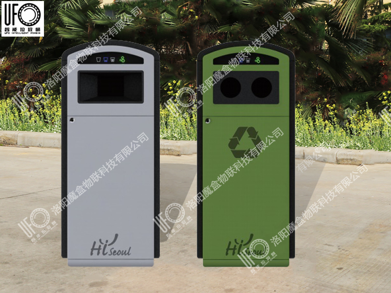 垃圾箱通過(guò)不同投放口進(jìn)行垃圾分類引導(dǎo),內(nèi)部設(shè)有壓縮系統(tǒng),用箱頂?shù)奶?yáng)能電池板供電,可自動(dòng)對(duì)投入的垃圾進(jìn)行壓縮。
